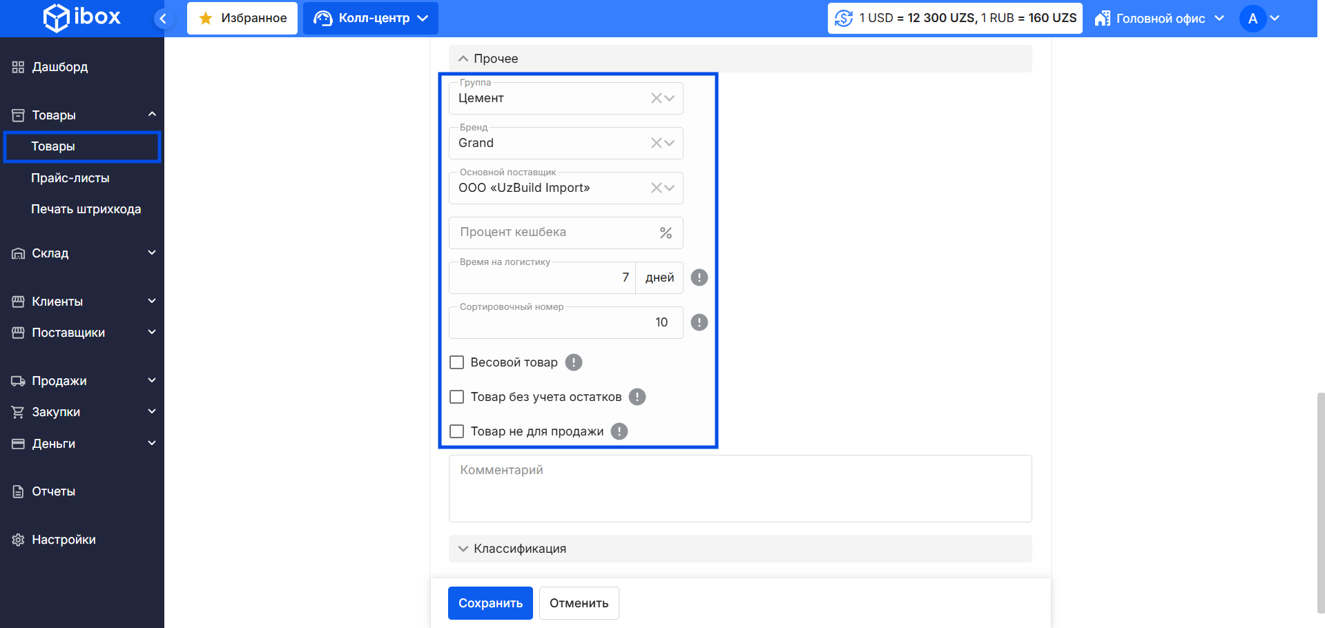 - Если товар не предназначен для продажи (например, сырье или для внутреннего использования), поставьте галочку «Товар не для продажи».