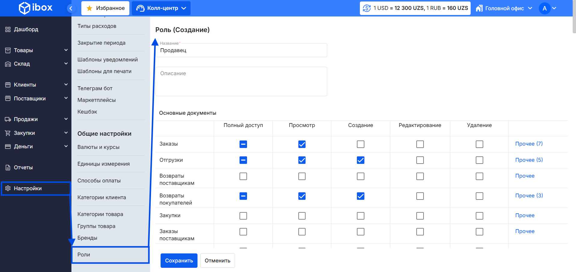 Роли определяют, какие действия сотрудники могут выполнять в системе. Без назначенной роли сотрудник не сможет работать в iBox.
