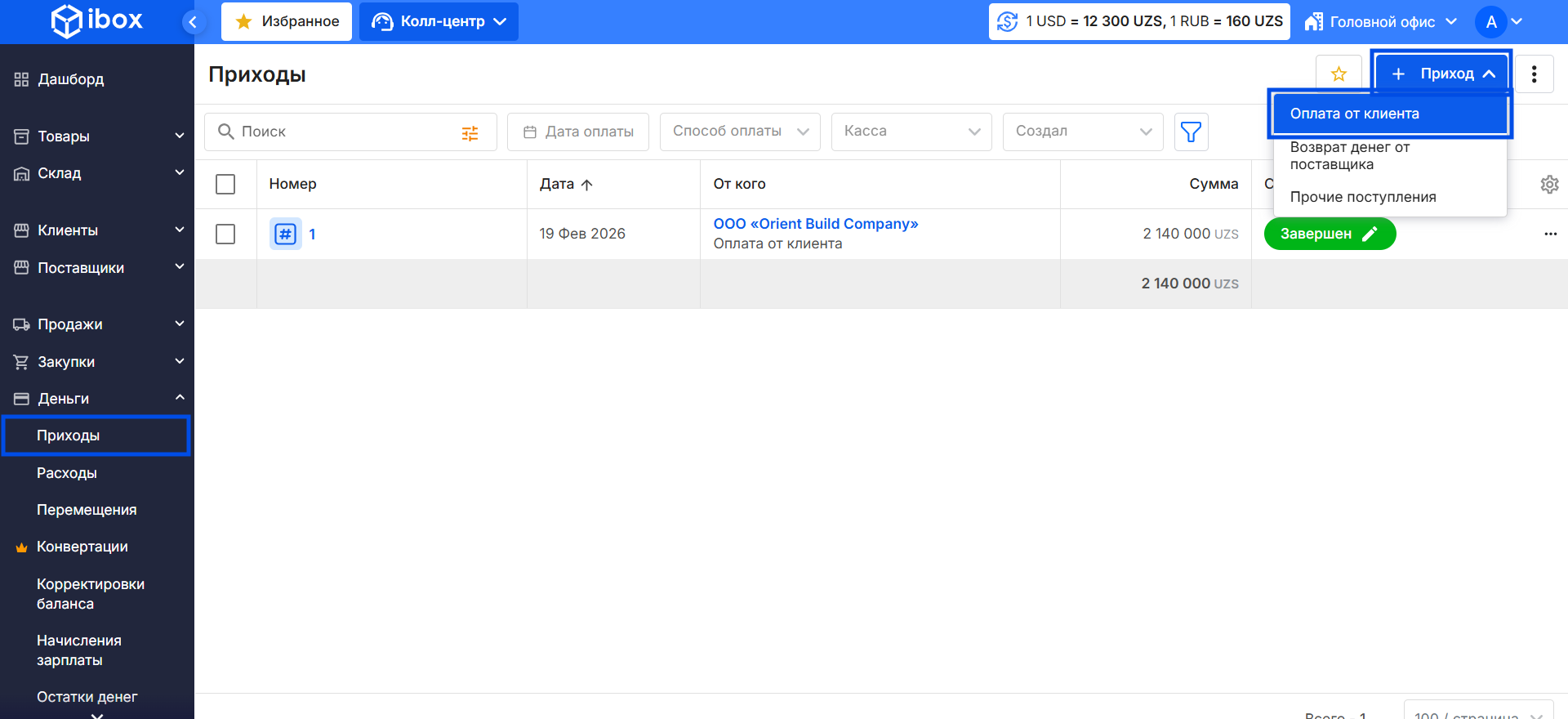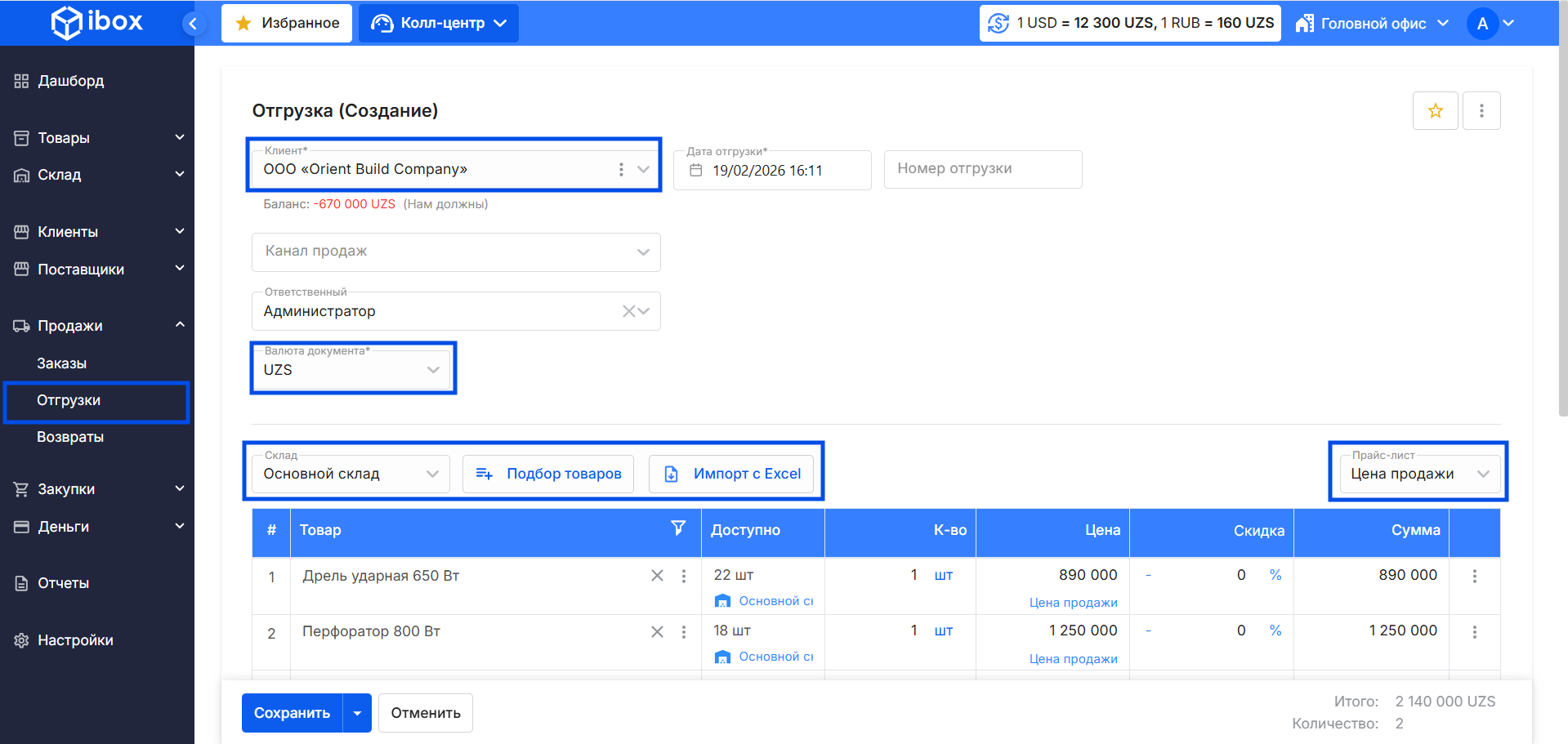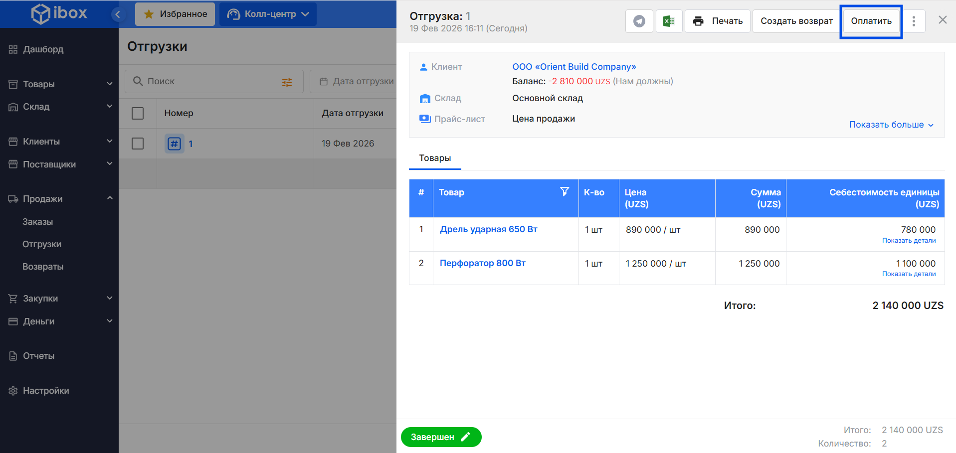 После поступления товаров на склад вы можете отгрузить их клиенту.