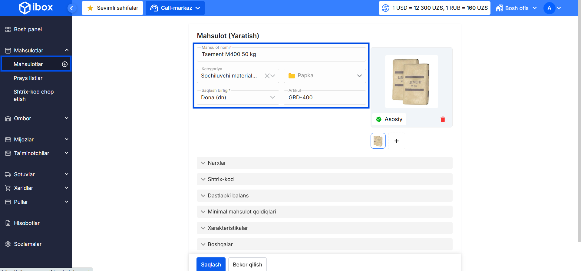 Siz mahsulotni Mahsulotlar bo‘limida qo‘shishingiz mumkin.