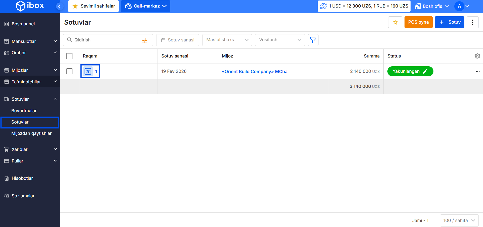 - Sotuv raqamiga bosing.